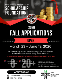 Muscogee Nation office closures, officially-sponsored events, meetings, services, and their deadlines.